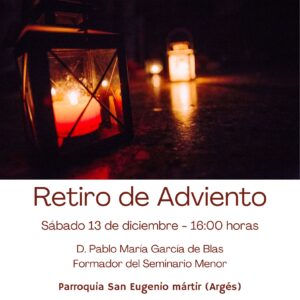 El próximo sábado 13 de diciembre a las 16:00 horas tendremos el retiro parroquial de Adviento, para ayudarnos a vivir este tiempo precioso de espera alegre del Señor, que viene a salvarnos.